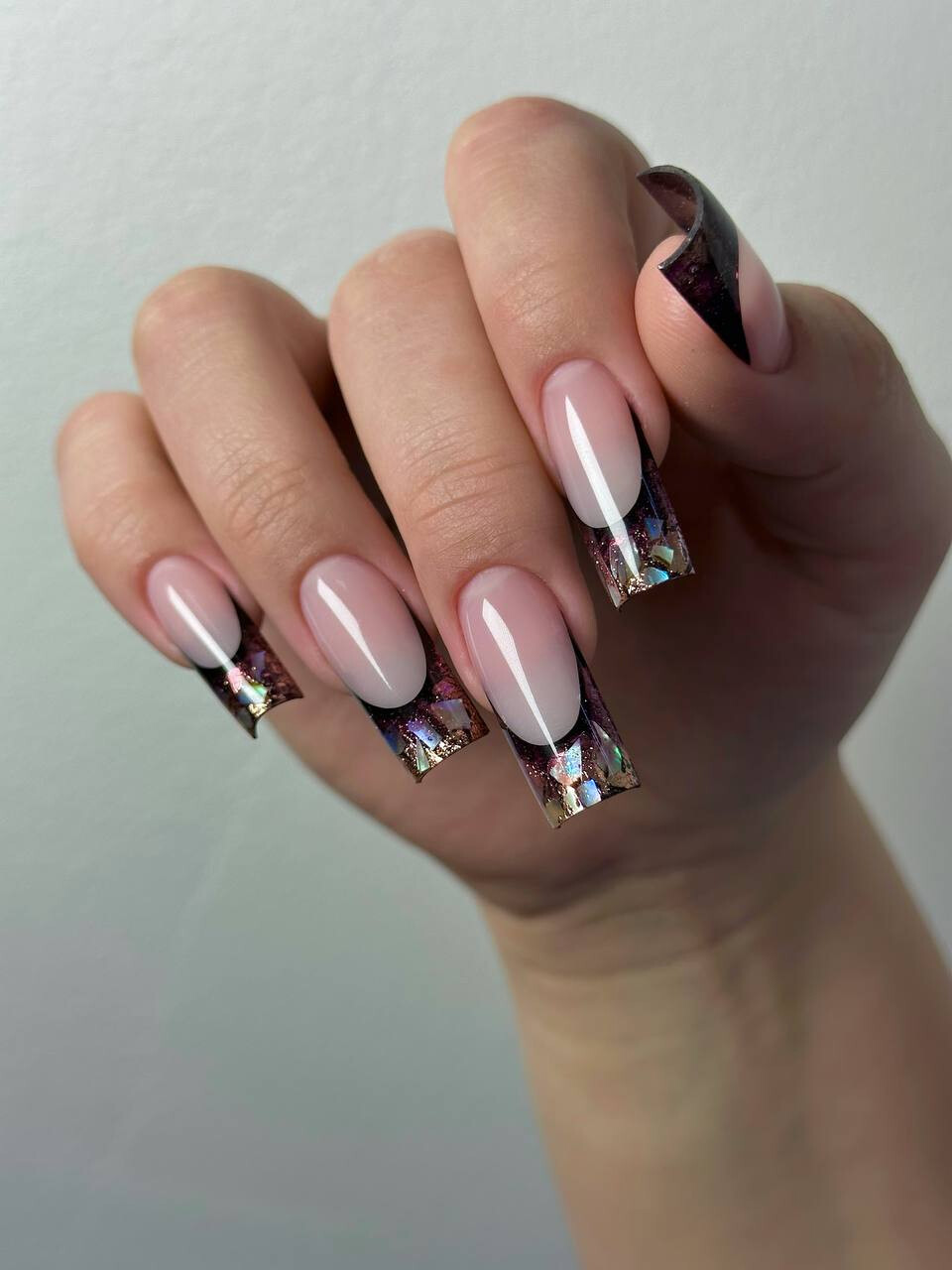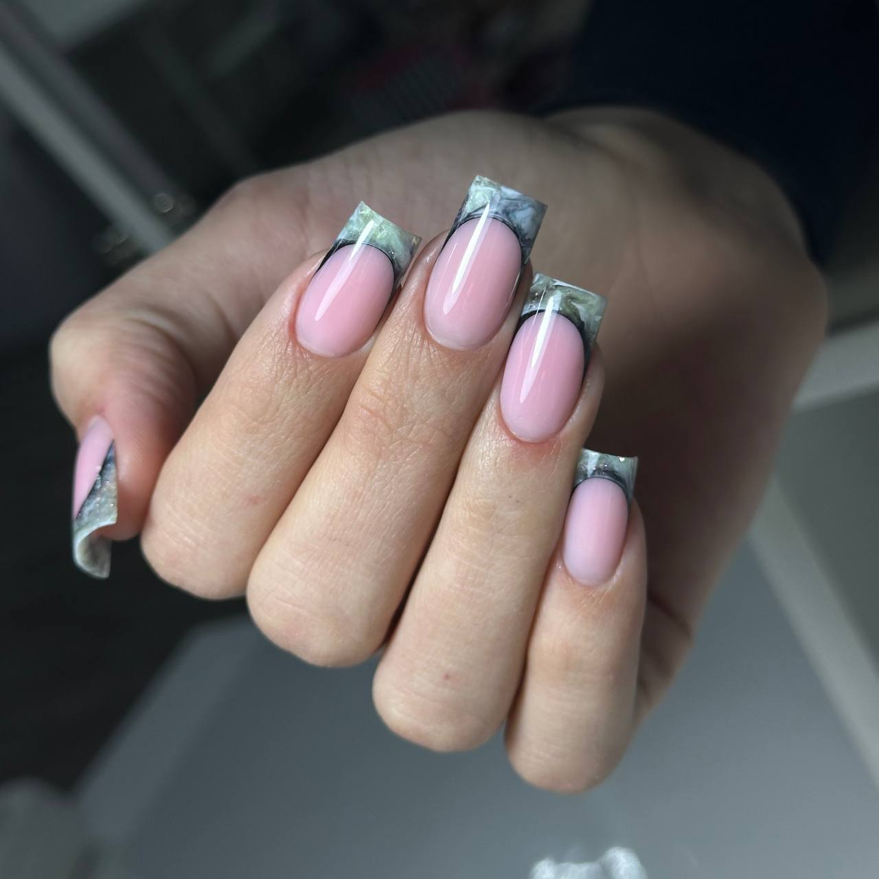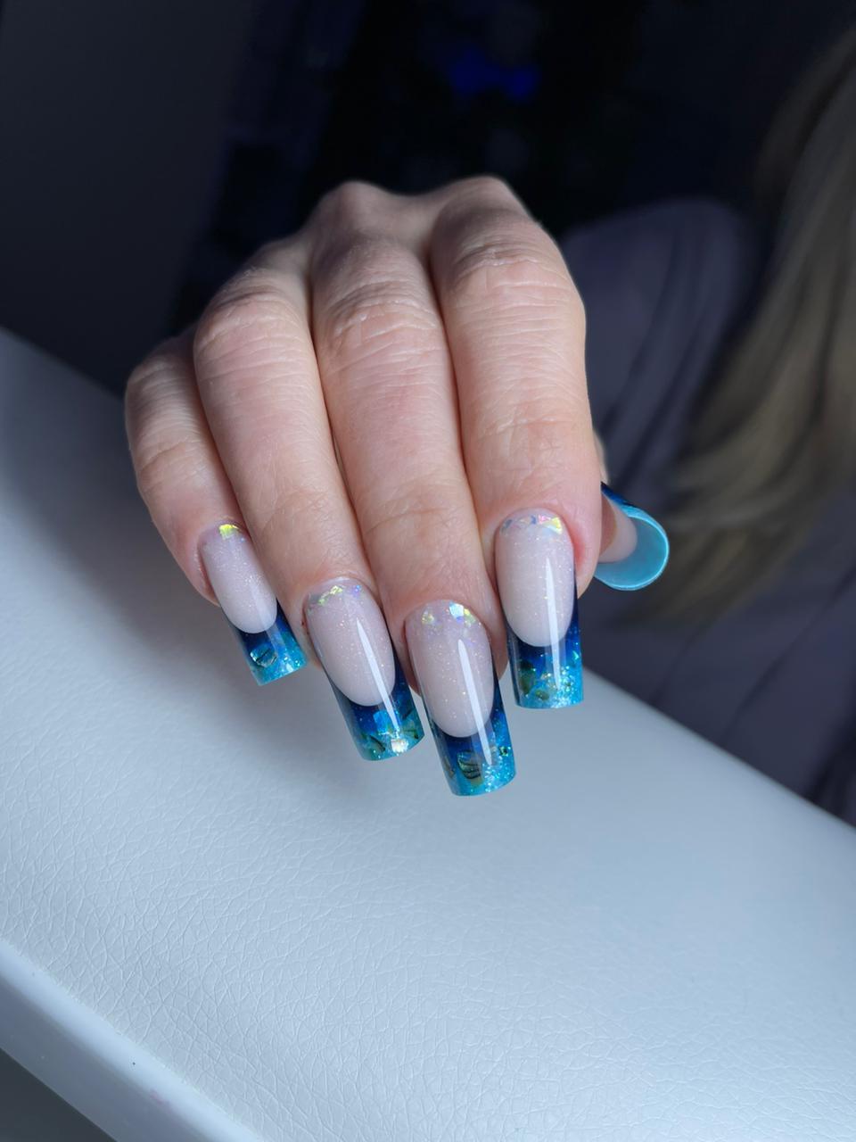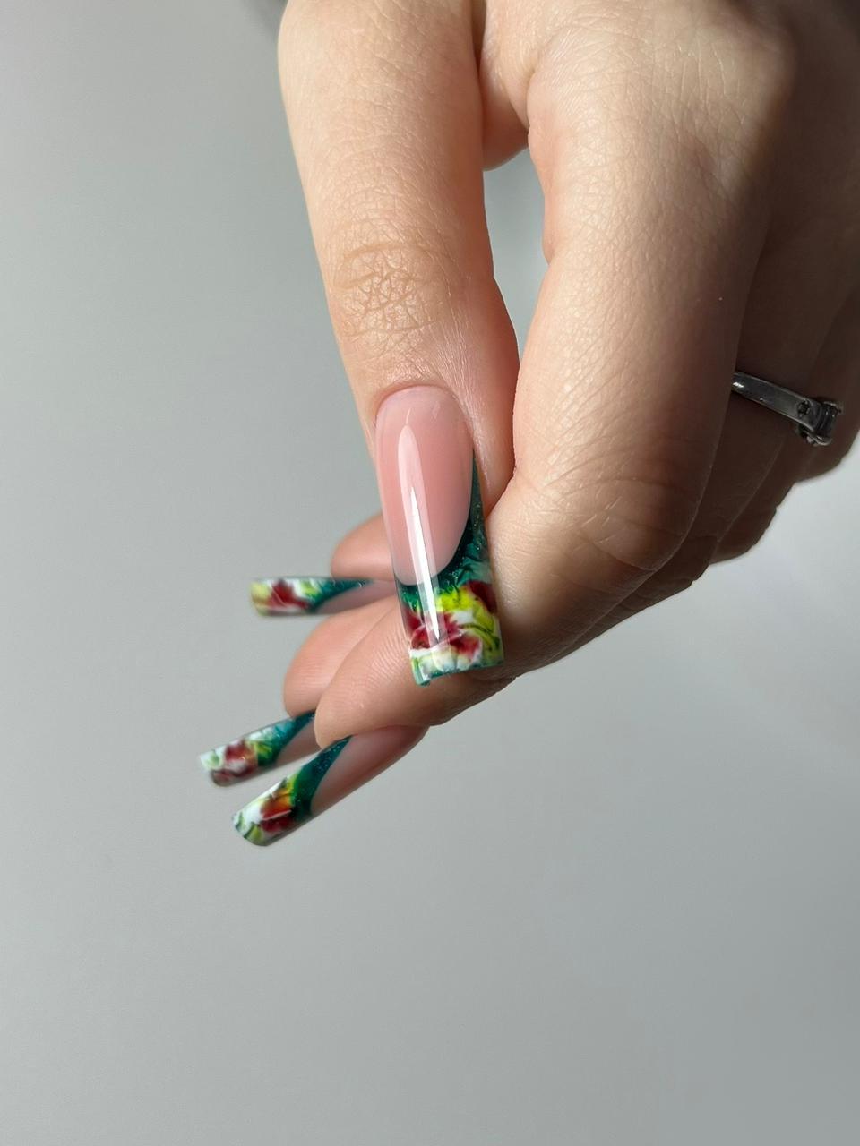 Моделирование в технике выкладной френч, салонная длина. Формы квадрат и миндаль.