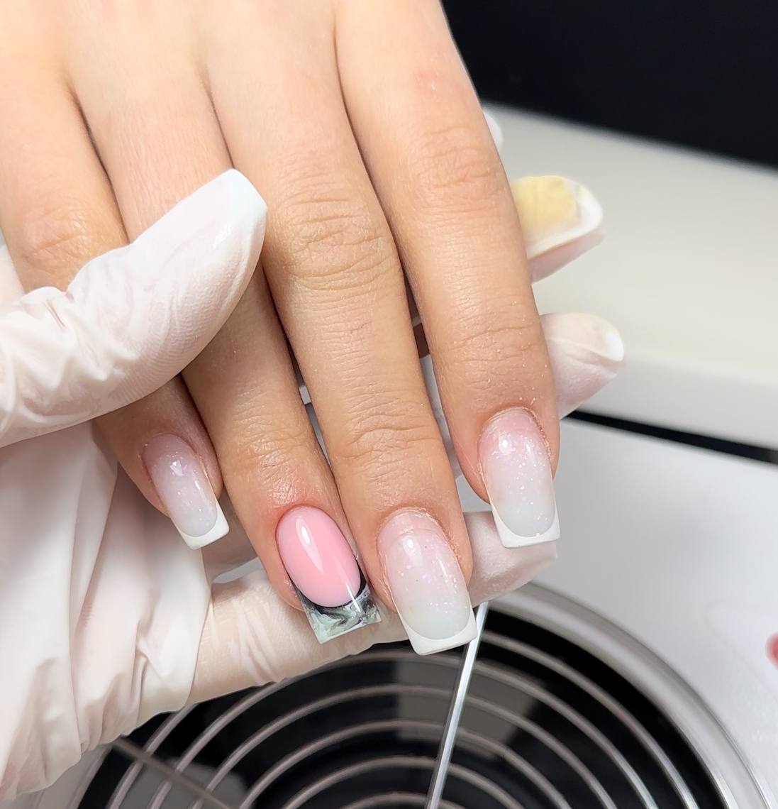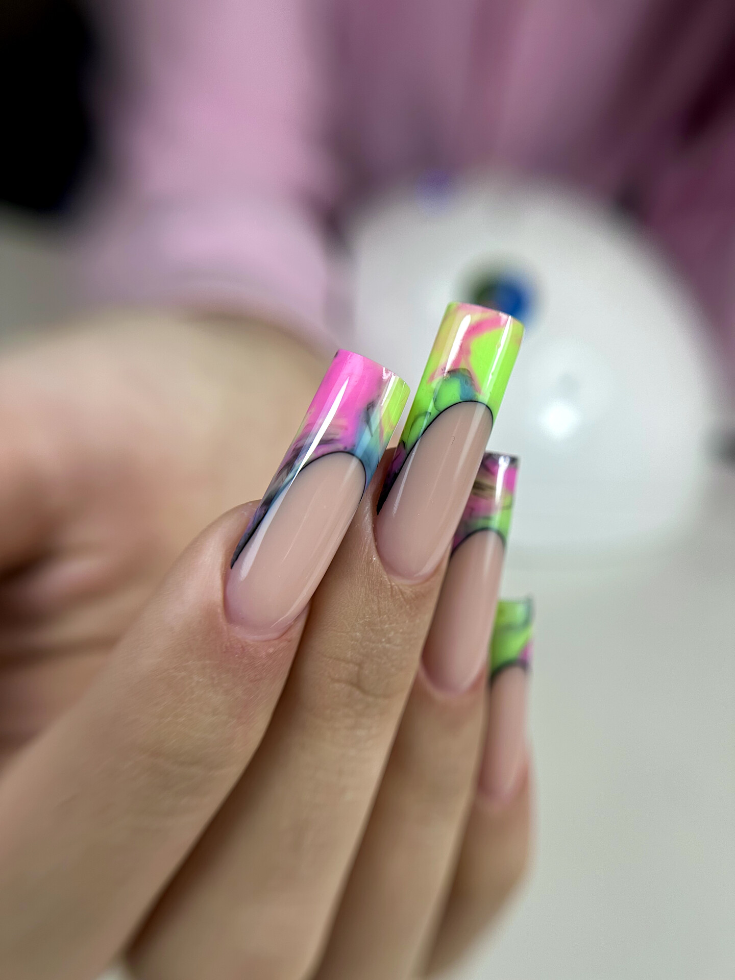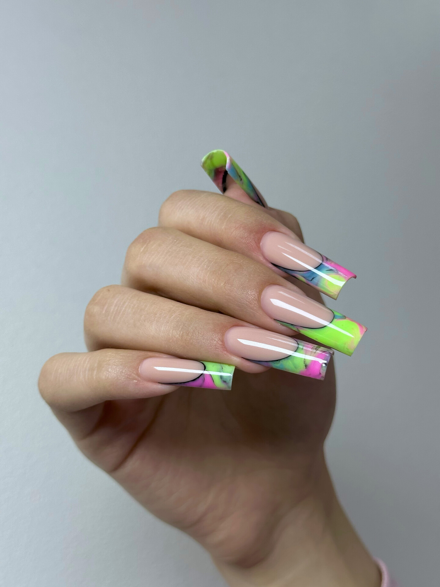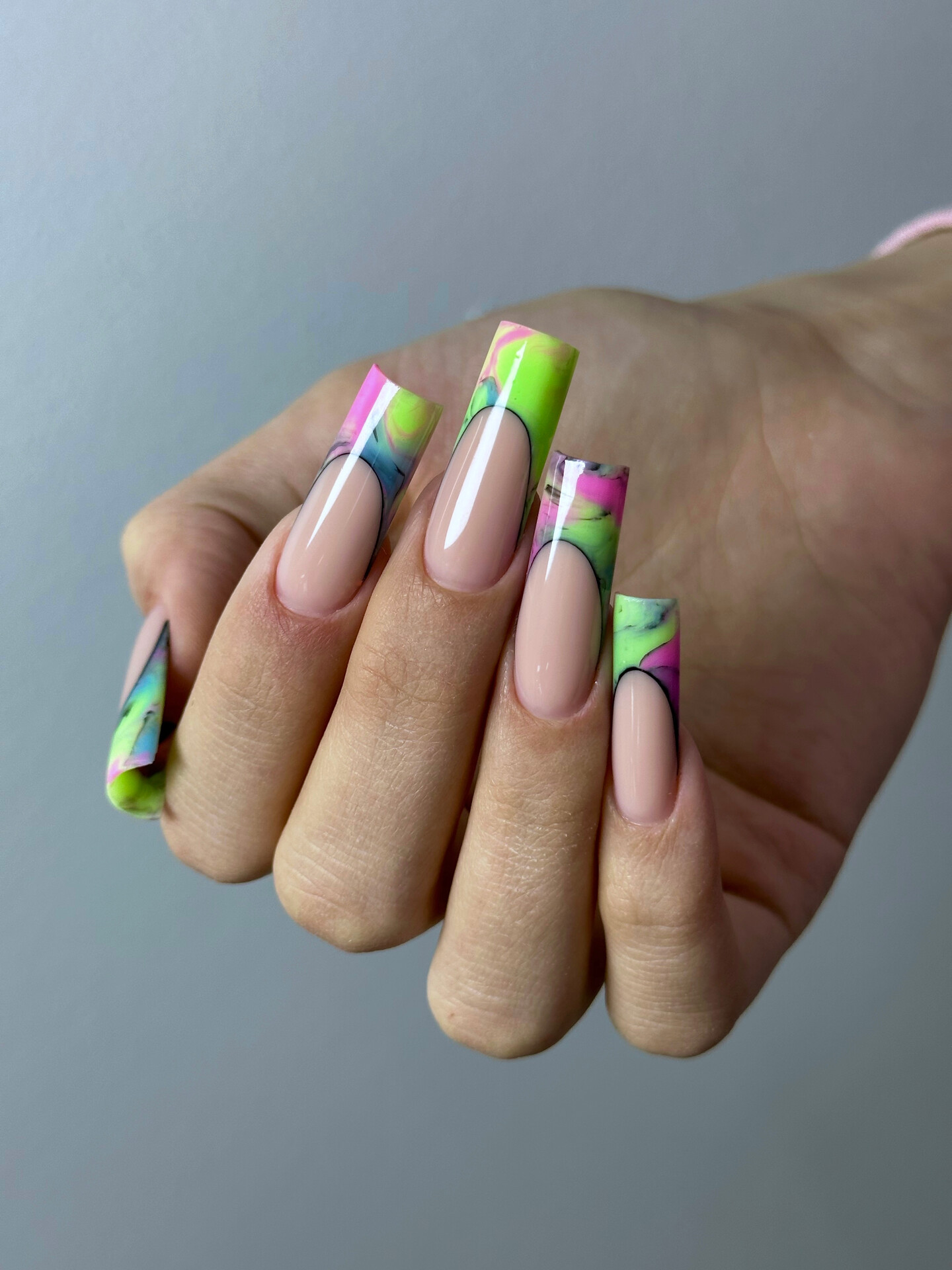 Моделирование в технике выкладной френч, салонная длина. Формы квадрат и миндаль.